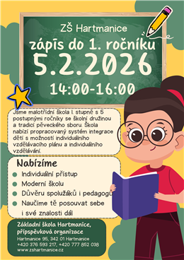 | ZŠ Hartmanice zápis do 1. ročníku | ||