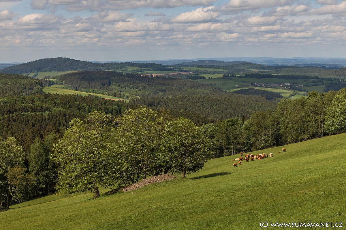 Z Horního Kochánova se otevírá překrásný výhled na Sušicko, vidět jsou i vrcholy Brd.